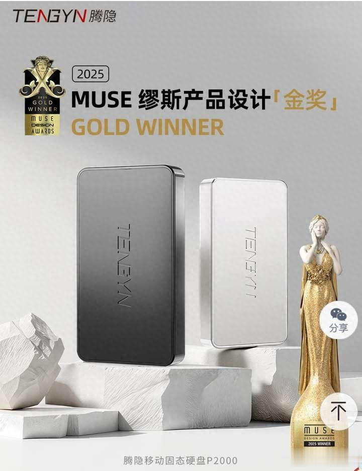 ‘而在众多移动SSD产品中,荣获2025年国际缪斯产品设计“金奖”的腾隐移动固态硬盘P2000(下文简称为腾隐P2000),更是以兼顾性能、颜值与兼容性的表现,成为摄影师解锁存储自由的优选。