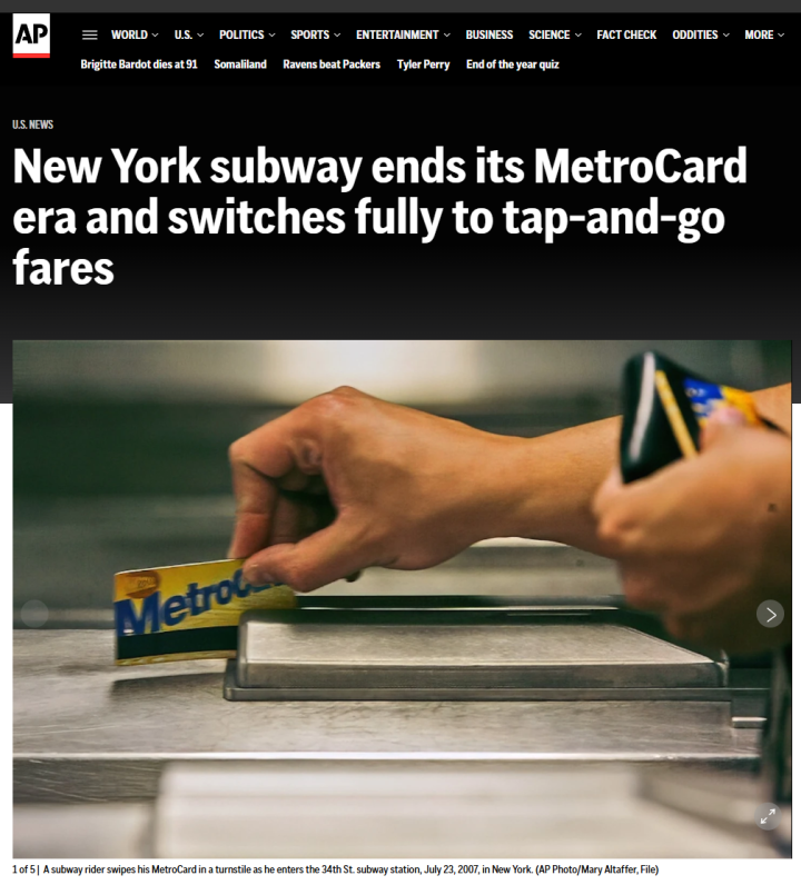 2025年12月31日是购买或充值地铁卡的最后期限,届时整个交通系统将全面过渡到OMNY非接触式支付系统。乘客只需轻触信用卡、手机或其他智能设备即可支付车费,就像日常购物付款一样便捷。交通部门官员表示,如今超过90%的地铁和公交出行都使用这套2019年推出的"即触即付"系统支付。