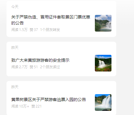 为保障游客生命财产安全,维护景区管理秩序,根据《中华人民共和国民法典》《中华人民共和国治安管理处罚法》《国家旅游局关于旅游不文明行为记录管理暂行办法》及相关法律法规,黄果树景区郑重公告如下:一、严守购票规则,禁止任何形式的逃票行为1.合法购票:所有游客须通过景区官方渠道(官方平台、授权平台、售票窗口)购买门票,凭票核验入园。2.禁止任何逃票及违规行为,包括但不限于:(1)翻越围墙、攀爬护栏;(2)冒用优惠证件或伪造优惠资格。二、违规处罚措施补票:逃票者需全额补缴票款。法律责任:依据《民法典》第一百七十九条、第一千一百六十五条,若逃票导致公共设施损坏,依法追究民事赔偿责任;情节严重者(如破坏文物、扰乱公共秩序),移交公安机关处理。信用惩戒:根据《国家旅游局关于旅游不文明行为记录管理暂行办法》,逃票行为将由景区上报旅游主管部门纳入国家“旅游不文明行为记录”,影响个人征信及全国景区购票权限。三、文明旅游倡议文明游览,是对自然的尊重,也是对自身安全的负责。我们呼吁:不轻信“免票捷径”,拒绝无资质导游诱导;不参与逃票,主动劝阻身边违规行为;用规则守护生命安全,以文明共筑旅游生态。我们将持续优化服务,丰富旅游业态,让每一张门票物有所值。