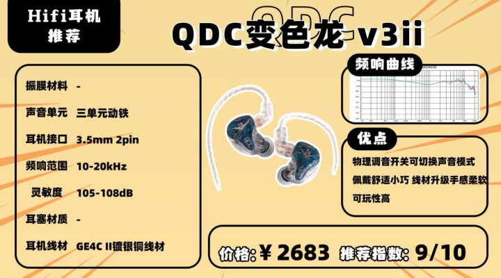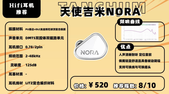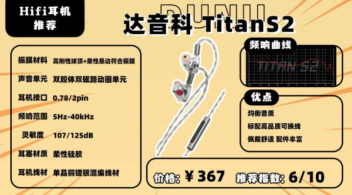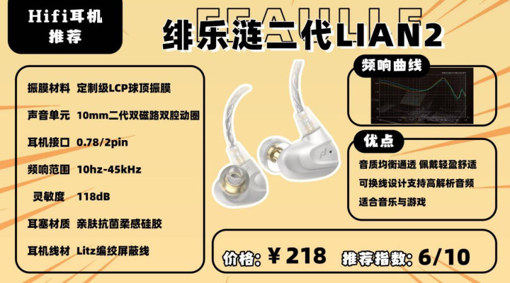 整体对曲风的适应性不错。高频干净,听感清爽,不容易刺耳;中频人声靠前一些,声音厚度适中,细节表现自然。当前端搭配得当时,声场有一定的开阔感。低频量感偏克制,下潜不算突出,在高规格音源下,整体解析和质感与高价位耳机仍有差距。