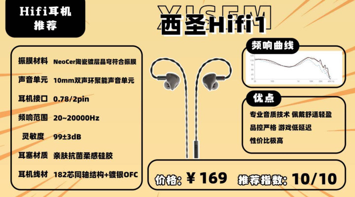 西圣hifi不仅呈现高保真音乐细腻细节,还能精准声像和强悍瞬态让游戏脚步声、枪声清晰可辨。有线传输零延迟,兼顾音乐与竞技。高解析麦克风支持360°全指向捕捉人声,抑制杂音、杜绝喷麦,通话和开黑顺畅。另外优质镀金2-pin母座与可换线模块设计,轻松升级线材、灵活切换场景。硬件堆料强悍,性能拉满,是百元耳机中的顶级hifi之选。