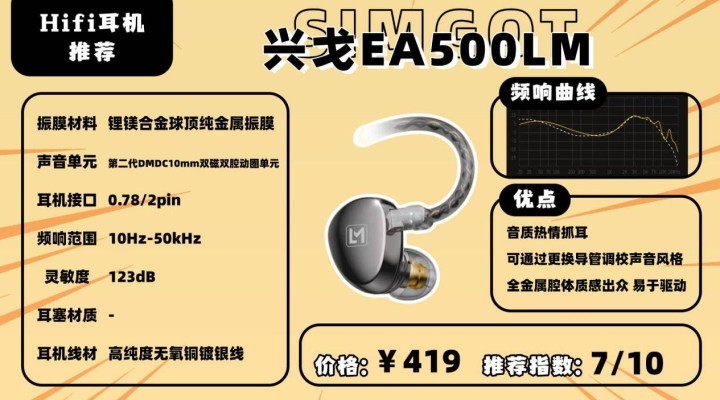 标配铜镀银线材,并支持可换插头,可在 3.5mm 与 4.4mm 接口间切换。0.78mm 双针设计方便后期升级。以这个价位来看,做工和人声表现都有明显优势,适合兼顾工作与日常听歌的人群。