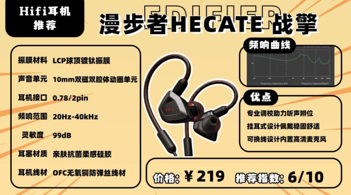 整体听感偏热情,声音密度高,第一耳朵就比较抓人。低频结实,有层次感,不拖泥带水;人声细节清楚,位置适中;高频解析力在线,信息量丰富。搭载第二代柔性悬边锂镁合金振膜,配合双磁双腔体结构,动态反应快,声音还原度不错。不过能量感偏强,长时间聆听容易累,声场规模也不是它的优势,更适合近距离、直接的听感取向。