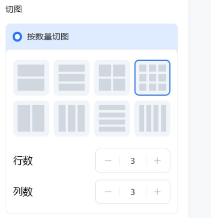 ①按数量切图:如果你要制作的是9张一组的创意宫格图的话,那这个就是你最好的选择啦~首先你要做的就是在左边的空白区域把你的素材放进去。