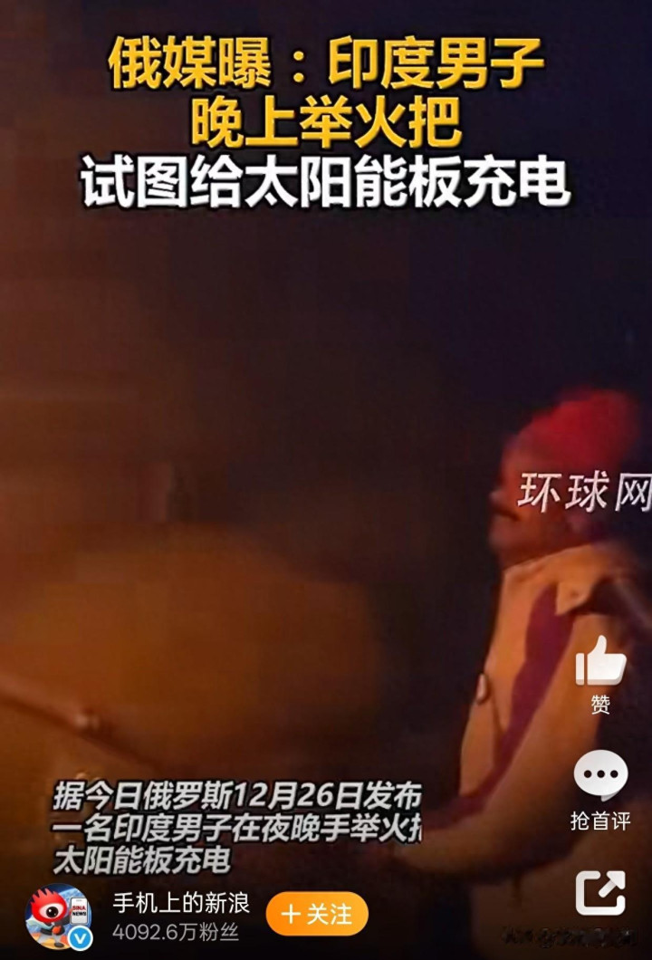 印度的供电现状有多惨,说出来你可能不信,根据印度中央电力局2025年发布的数据,比哈尔邦等北部邦区,夜间停电时长平均能达到4小时以上,农村地区更夸张,有时候一整晚都没电,老百姓被逼得没办法,只能想各种歪招,有人把光伏板绑在身上当“解暑神器”,想着能吸收点热量,有人就像视频里的汉子一样,用火把、柴火去凑太阳能板,就为了能点亮一盏灯,能给手机充上电。